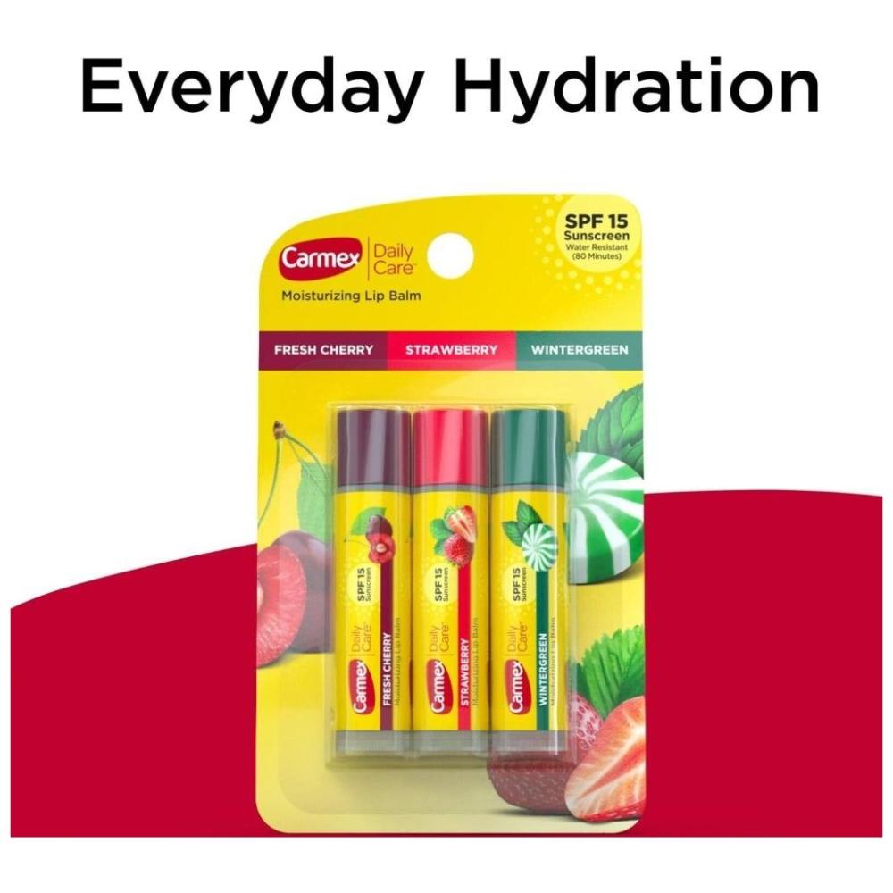 مجموعة متنوعة من بلسم الشفاه للعناية اليومية من كارميكس مكونة من 3 قطع